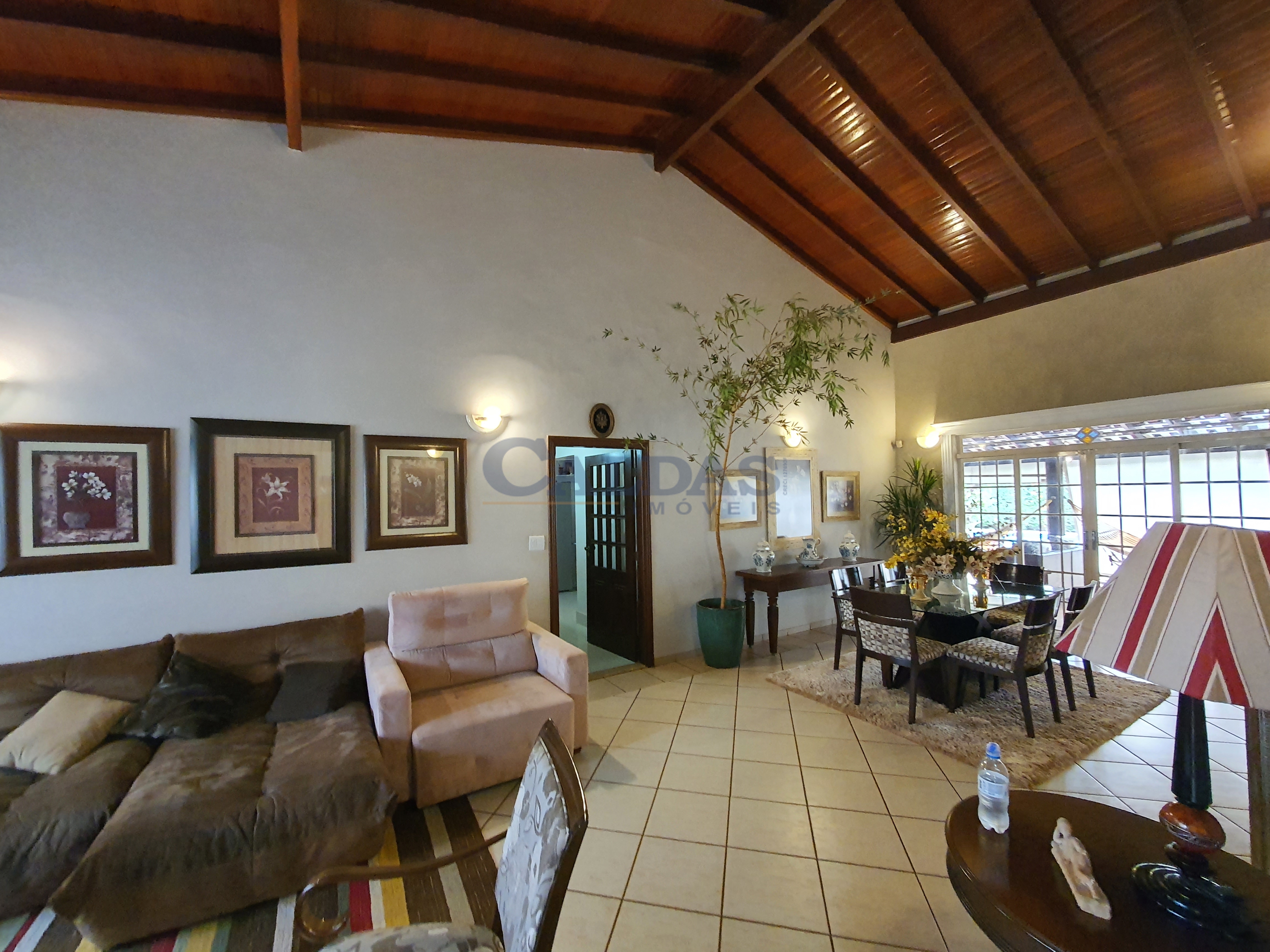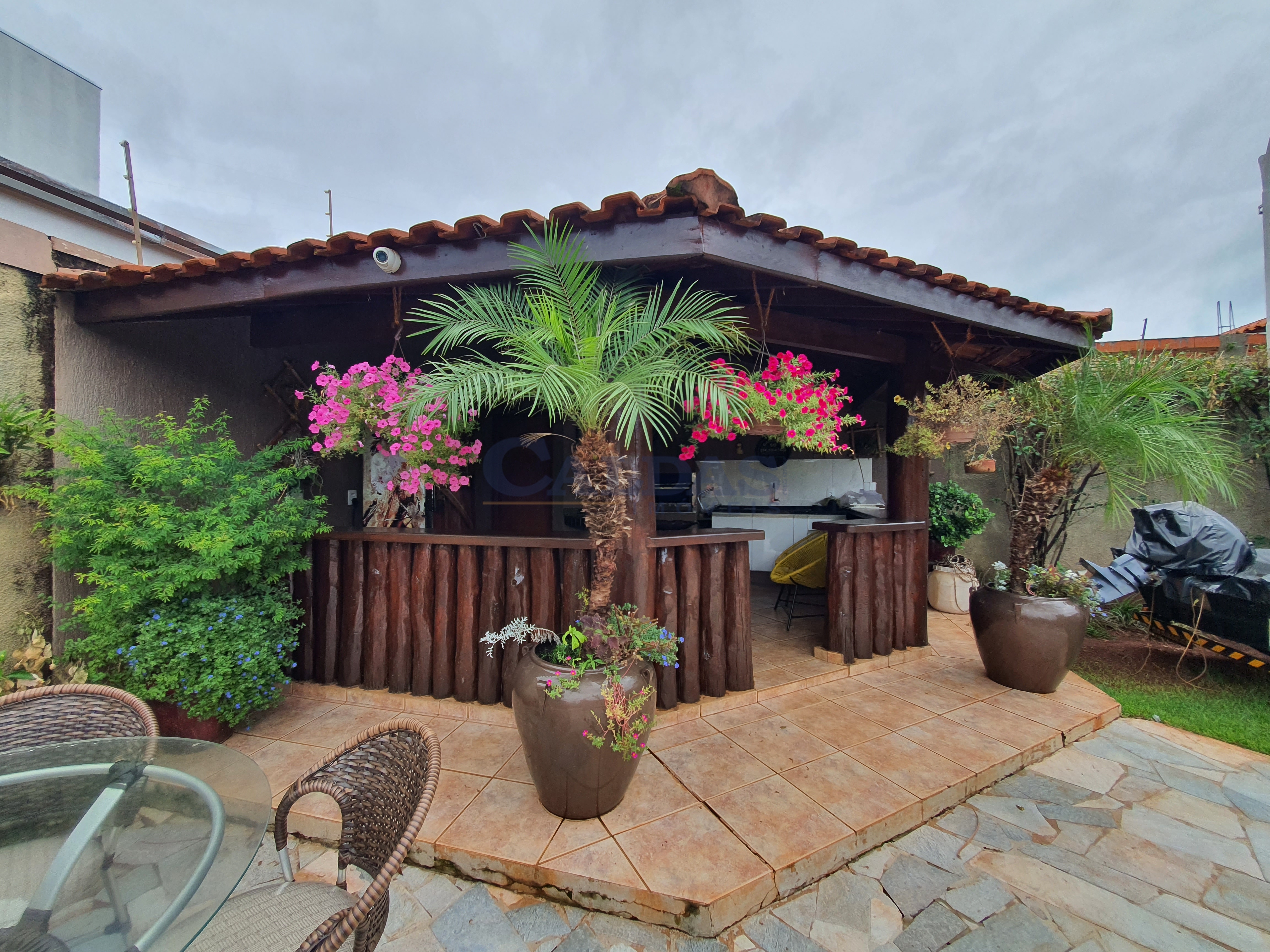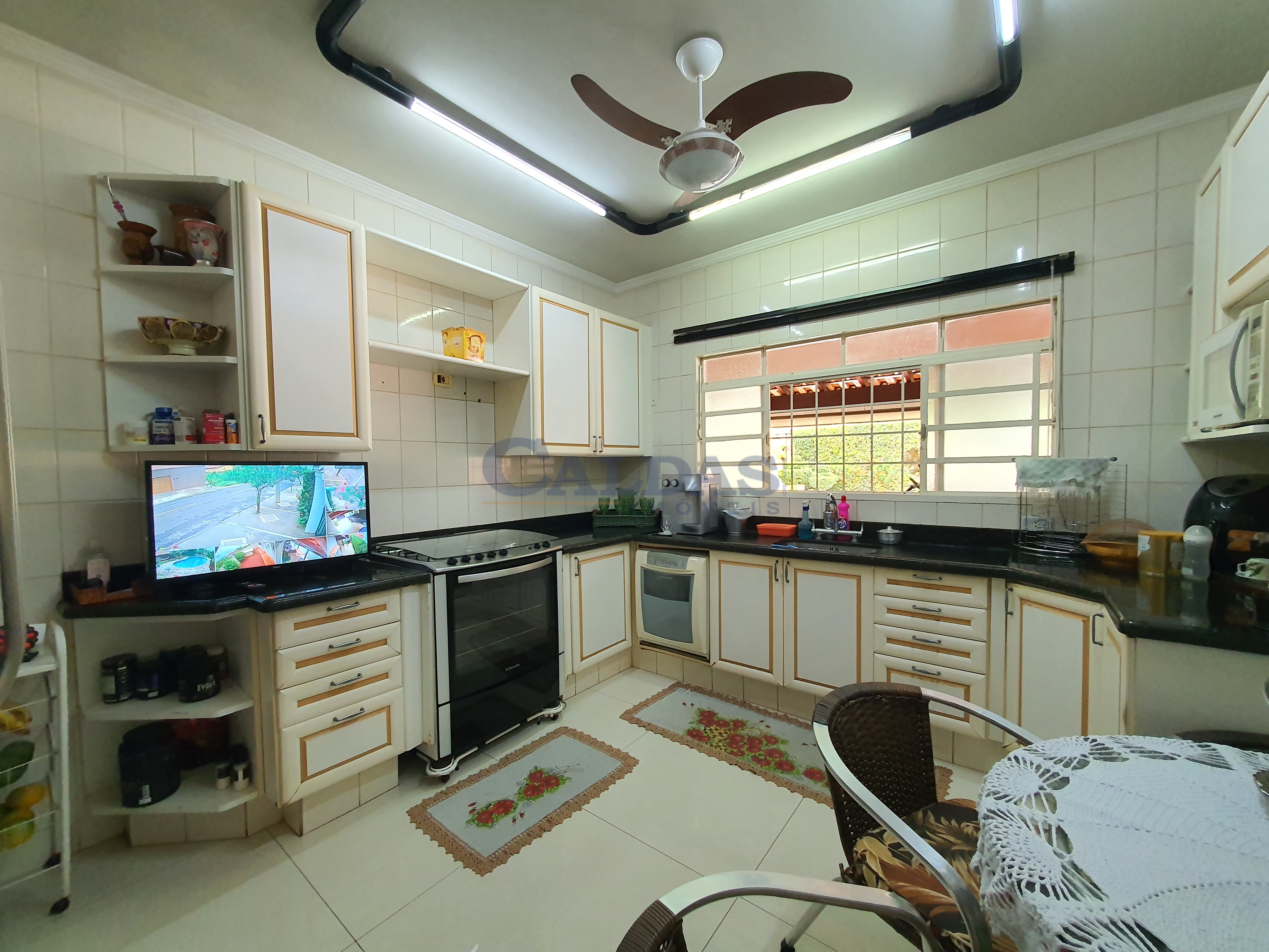 DESCRIÇÃO: 05 dormitórios sendo 02 suítes e 01 suíte máster (closet, banheira de hidromassagem), hall de entrada, sala ampla para 02 ambientes, lavabo, sala de TV, escritório, cozinha planejada, despensa, banheiro social, ampla área de lazer, piscina, chuveirão, quiosque, pia, balcão, churrasqueira, banheiro externo, lavanderia privativa, garagem para 06 veículos, casa externa para empregado (01 quarto, cozinha, banheiro), jardins, sistema de segurança, portão eletrônico, interfone, sistema solar e diversos planejados.