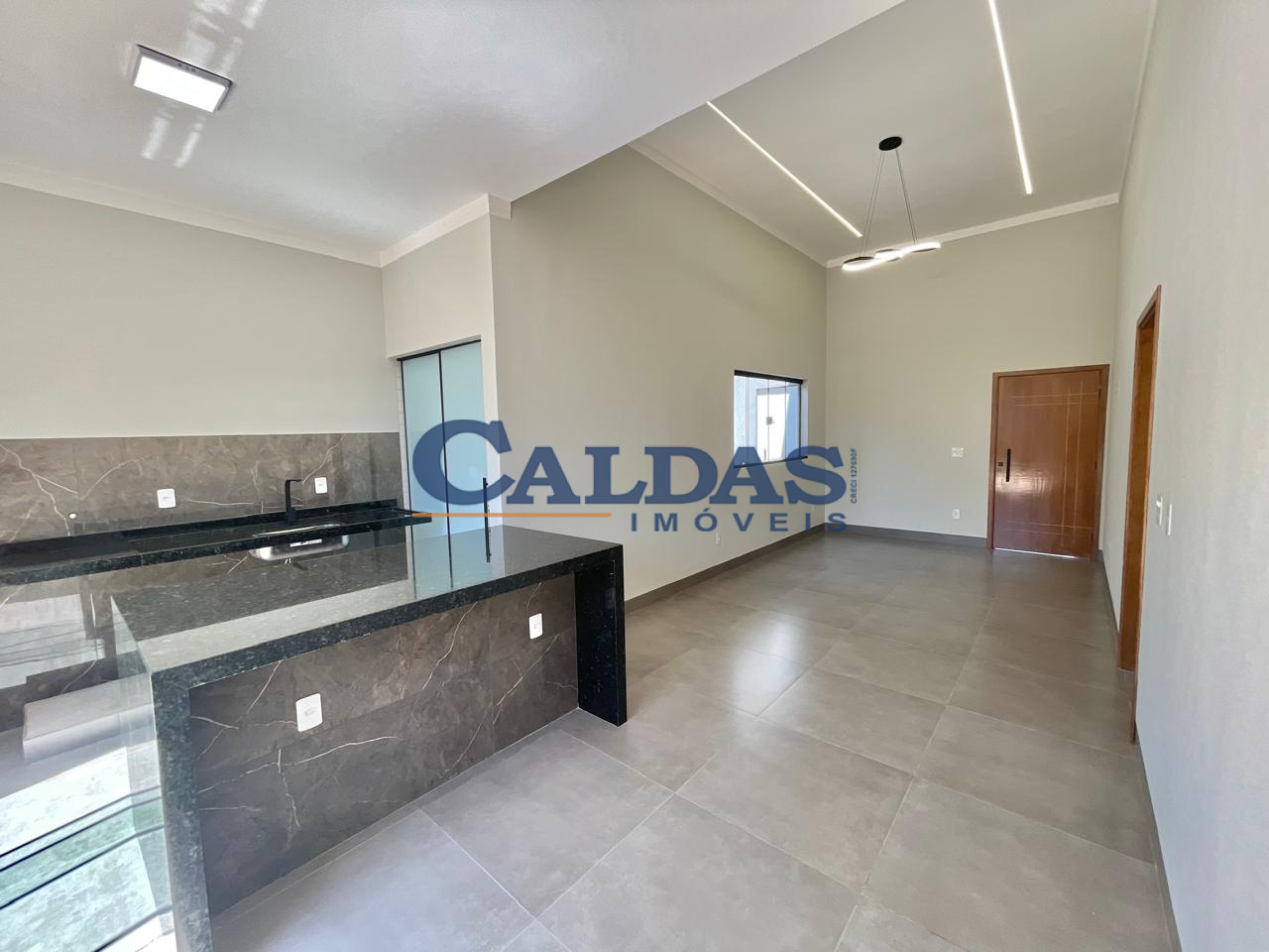DESCRIÇÃO: 03 dormitórios (sendo 01 suíte com closet), sala pé direito alto integrada com cozinha, banheiro social, lavanderia, amplo quintal, jardim de inverno, garagem, teto laje e piso cerâmica.