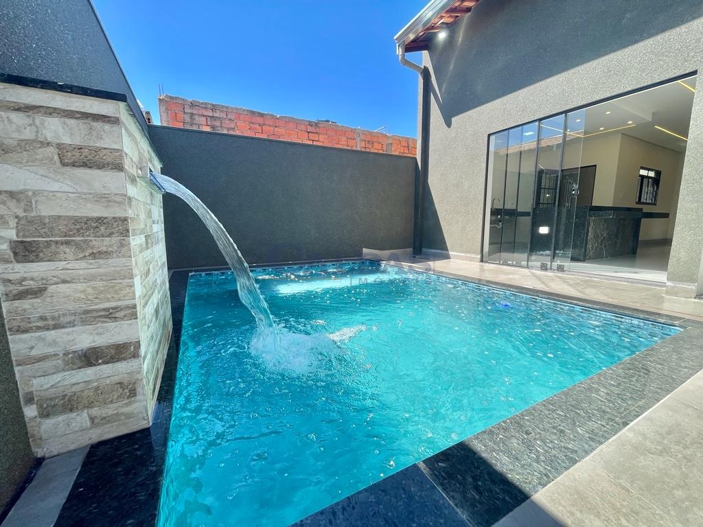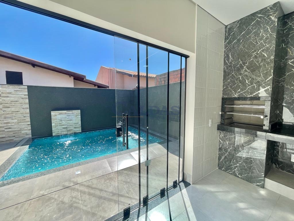 DESCRIÇÃO: 03 dormitórios (sendo 01 suíte), sala, cozinha gourmet, banheiro social, lavabo externo, piscina, ducha, jardim de inverno, lavanderia, portão eletrônico, interfone, jardins, teto laje e piso porcelanato.